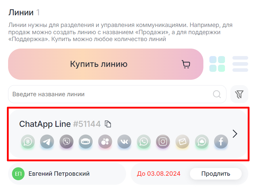 С DEMO линией появляется доступ к Личному кабинету ChatApp на 3 дня.