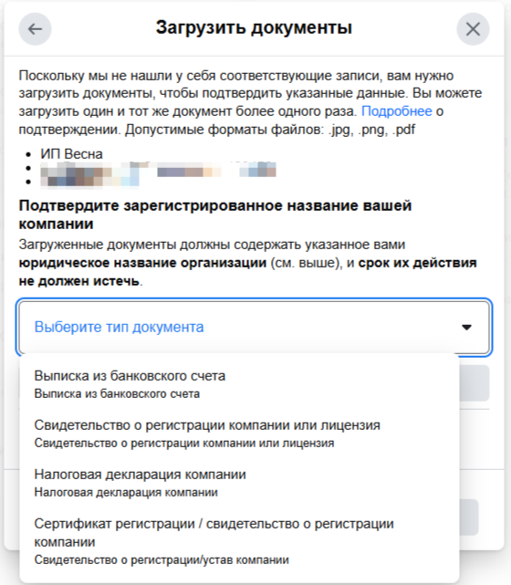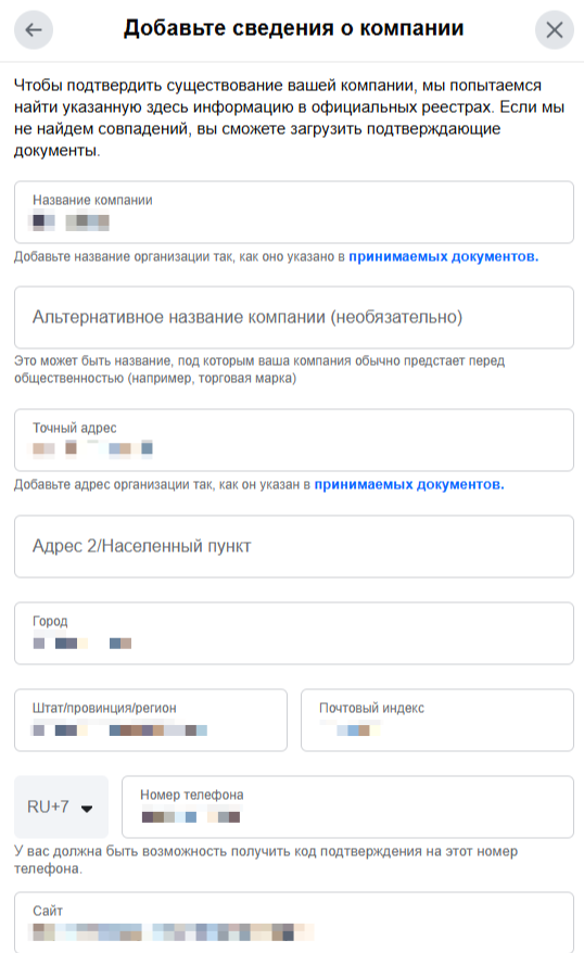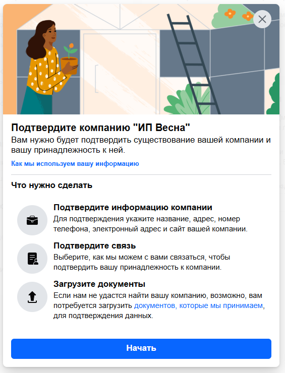 Чтобы подтвердить компанию на Facebook*, воспользуйтесь инструкцией ниже.