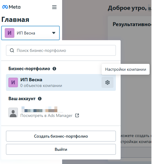2. В меню управления слева найдите пункт «Информация о бизнес-портфолио». Откроется вкладка со сведениями о компании.