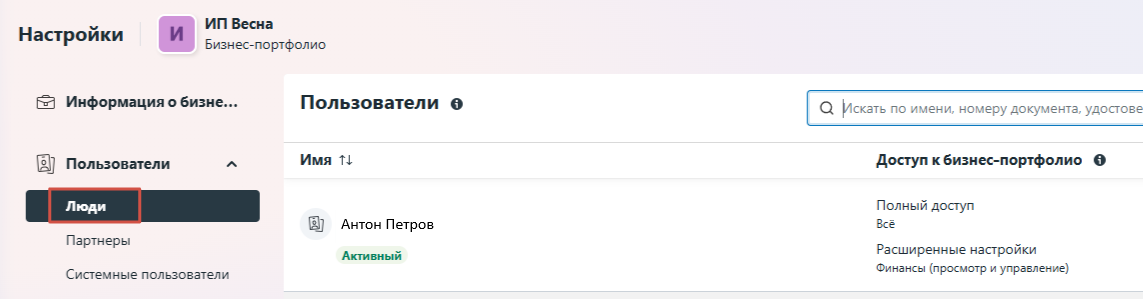 Чтобы добавить сотрудников в компанию и предоставить им доступ, в Настройках в меню слева выберите «Пользователи» → «Люди» и задайте нужные параметры.