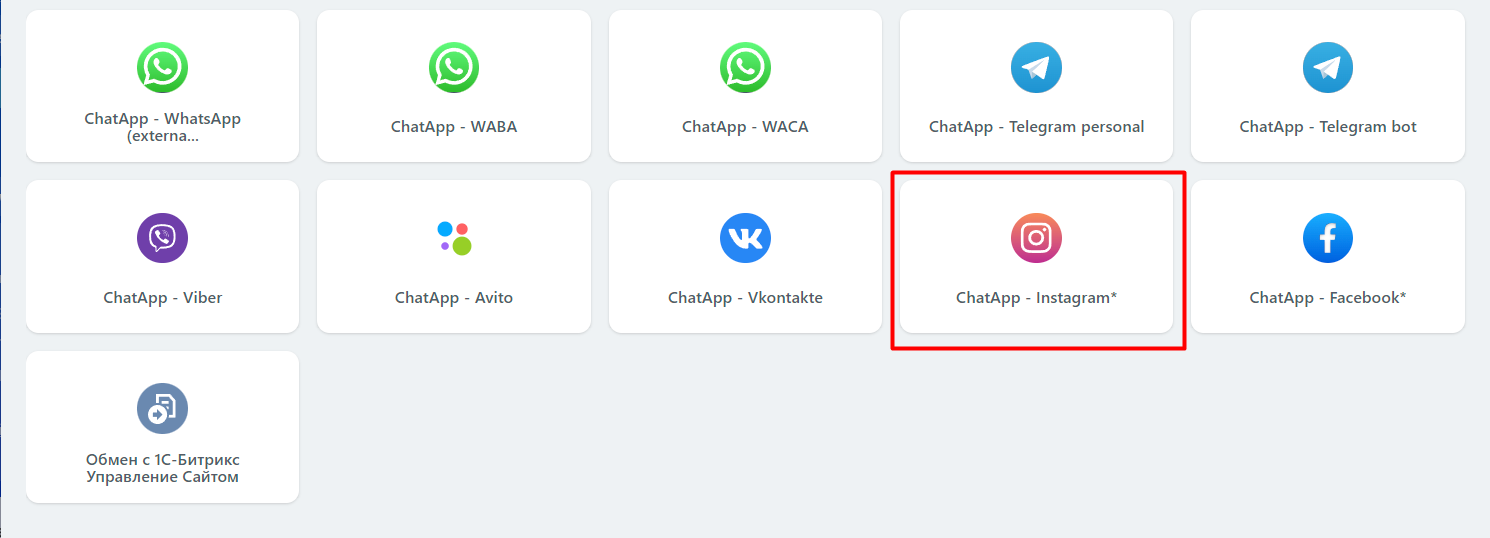 3. Зайдите в Контакт-центр и выберите коннектор «ChatApp — Instagram*».