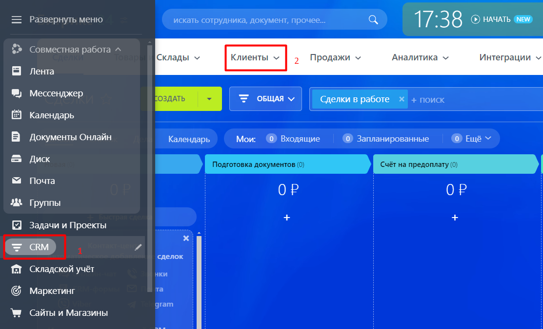 1. Перейдите в раздел CRM — вкладка «Клиенты».