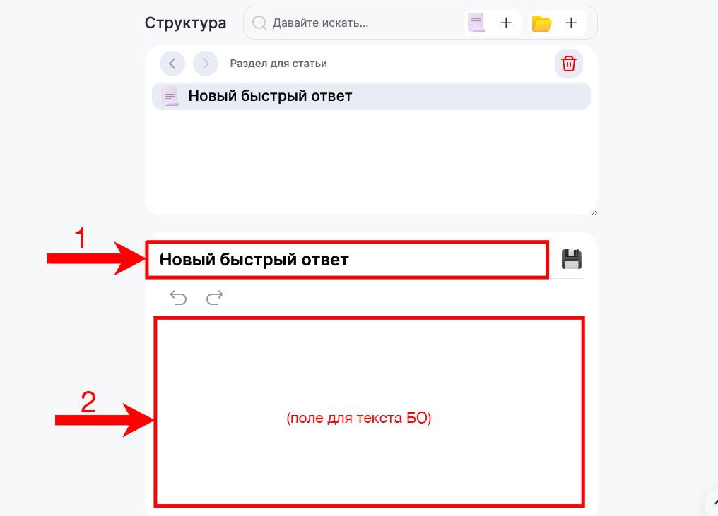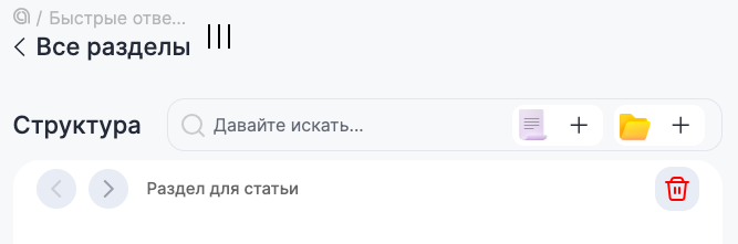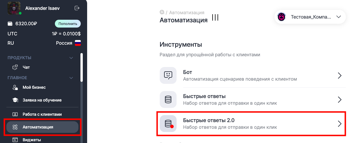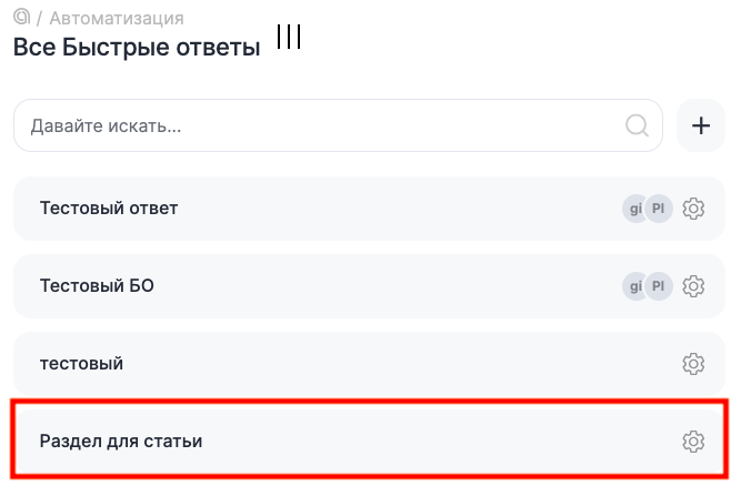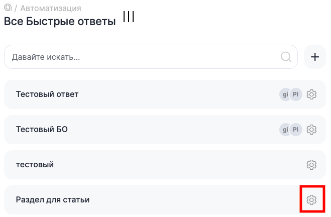 1. В разделе «Быстрые ответы 2.0» выберите нужный раздел. Нажмите на