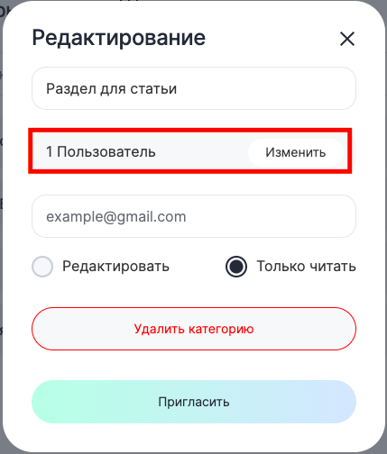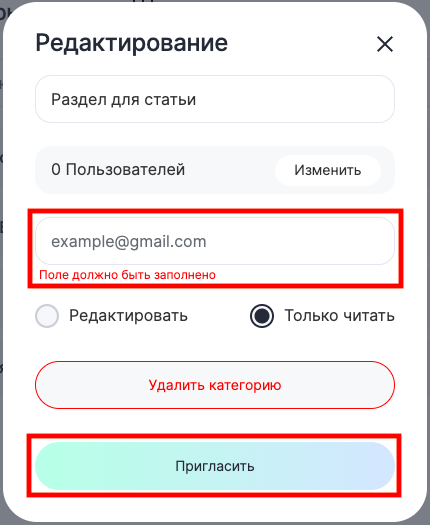 2. Введите в специальное поле почту сотрудника, которому желаете предоставить доступ;