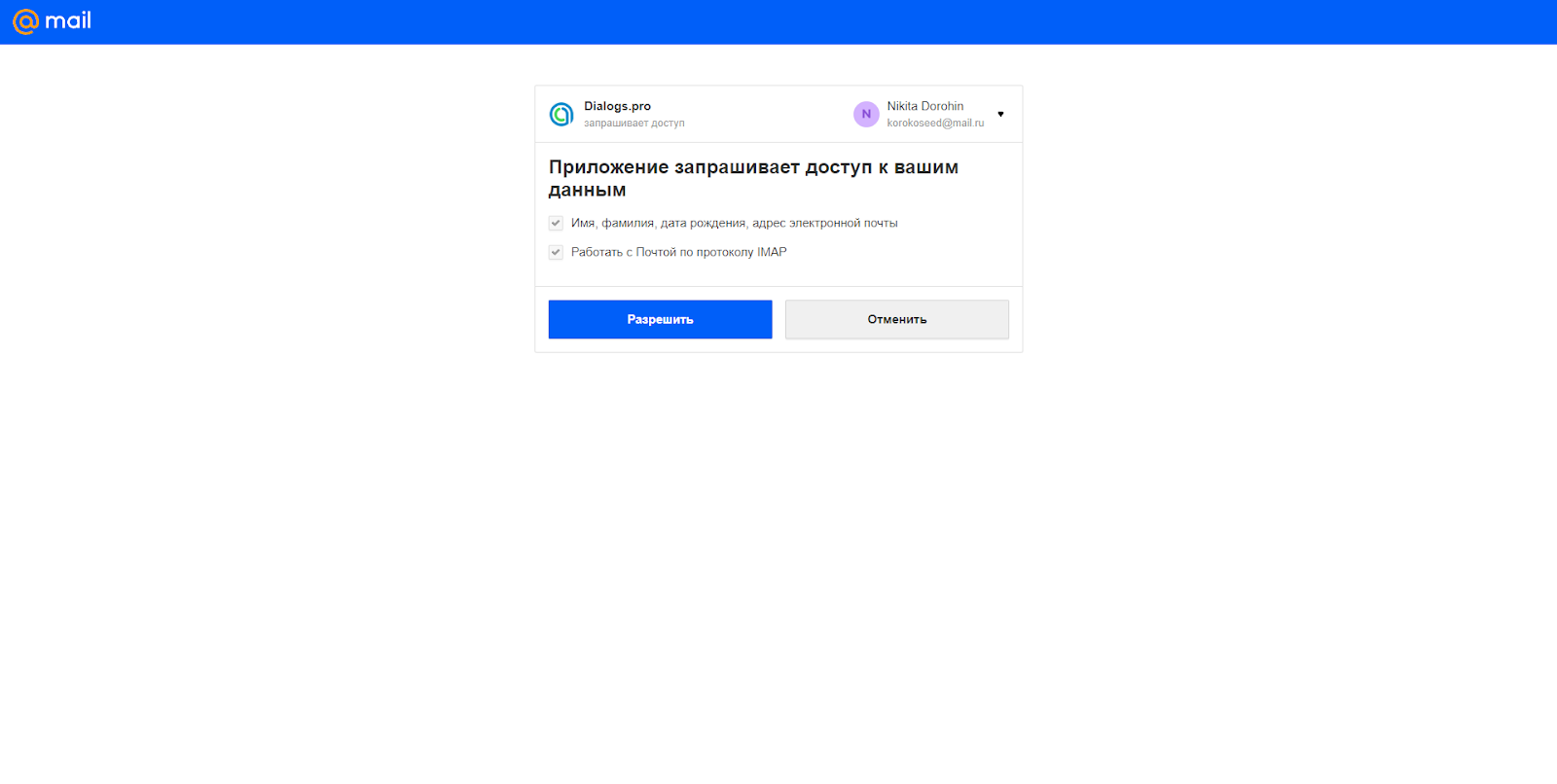 настройка IMAP mail.ru