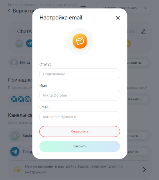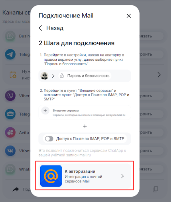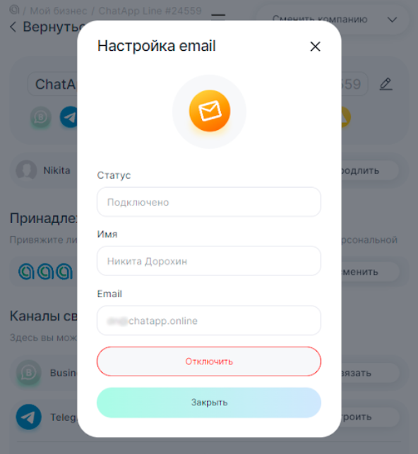 Подключение канала Email