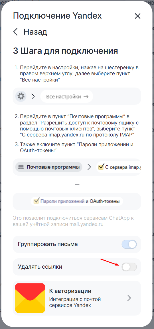 1. Выберите, хотите ли вы группировать письма и по умолчанию удалять из них все ссылки;