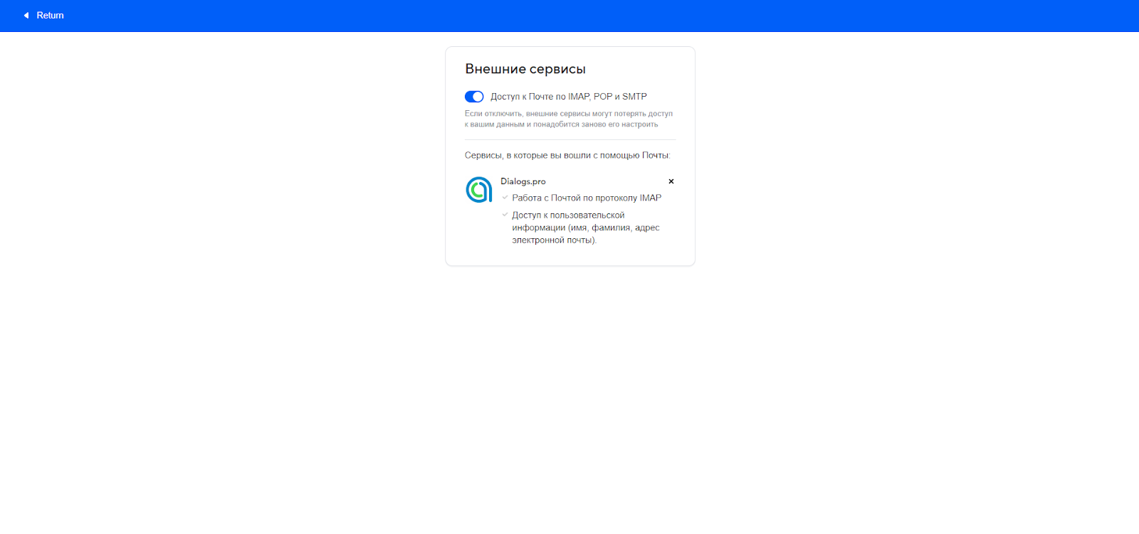 2. Включите «Доступ к почте по IMAP, POP и SMTP».