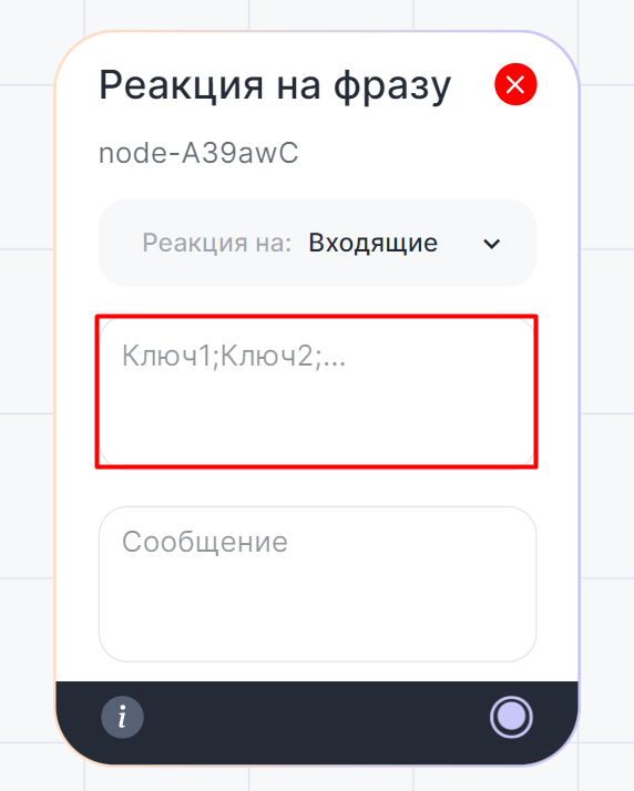 - В поле «Ключ» добавьте слова или фразы, на которые будет реагировать бот. Например, «Скидка».
