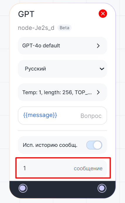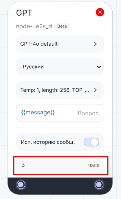 - Использовать историю сообщений — активируйте ползунок вправо, чтобы блок учитывал сообщения: можно выбрать количество присланных сообщений или часов для обработки.