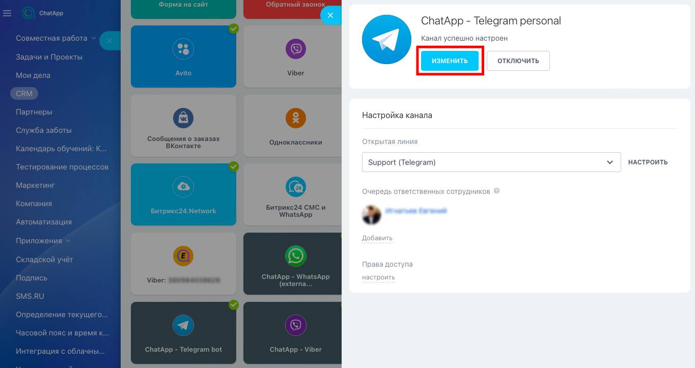 В Telegram можно общаться с конкретным человеком или с группой людей. Чтобы ваши сотрудники могли общаться с группой через чат Битрикс24, попросите администратора группы в Telegram добавить номер (Telegram ) вашей компании в участники группы.