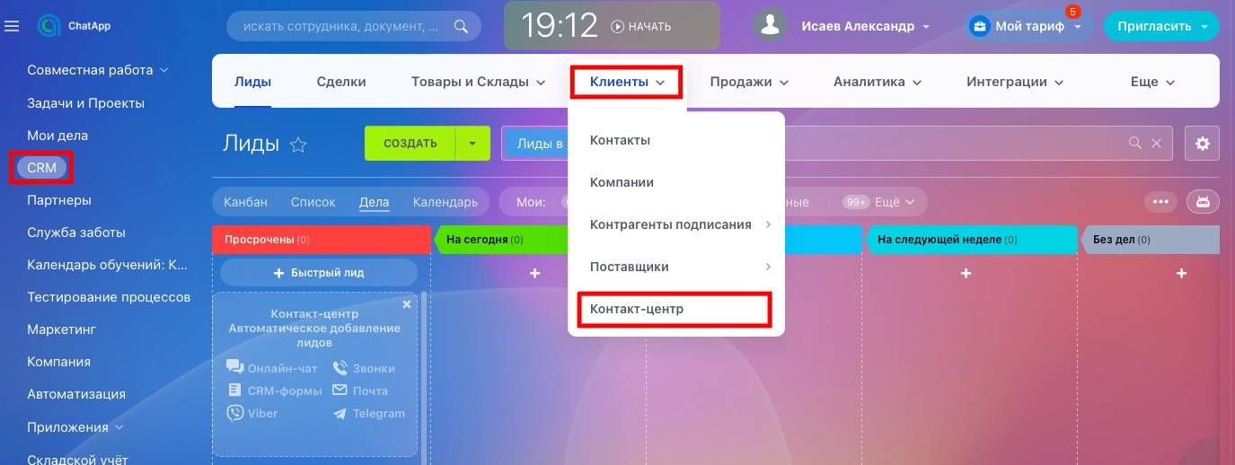 2. Перейти в раздел «Контакт-центр»;
