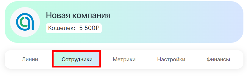 1. Вернитесь в раздел «Выбранная компания» и перейдите во вкладку «Сотрудники».