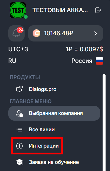 1. Войдите в личный кабинет и перейдите во вкладку «Интеграции».