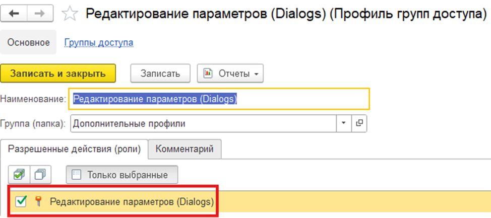 - Чтение параметров (Dialogs). Доступ к подсистеме в режиме просмотр без возможности настройки видимости команд.