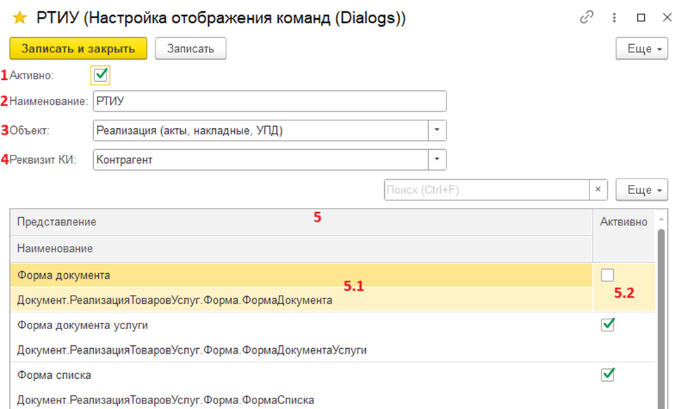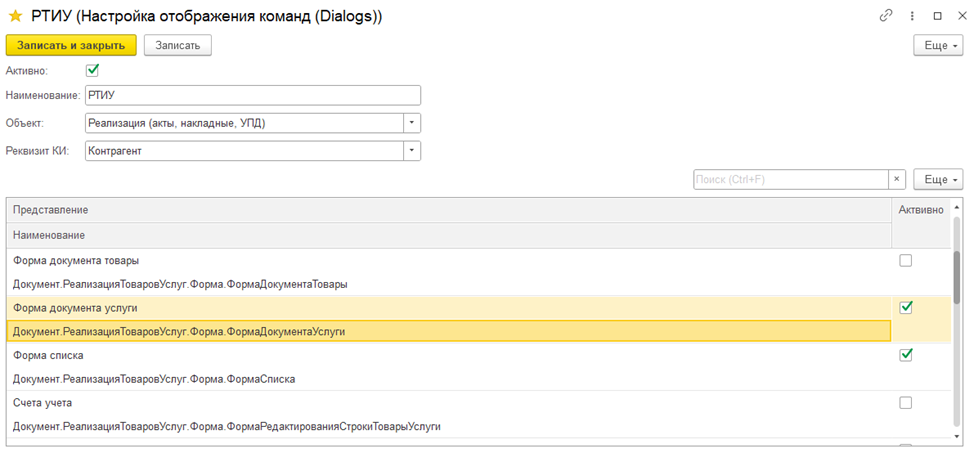 Для каждого документа предусмотрена точечная настройка перечня форм, в которых будут отображаться команды, а также анализируемое поле, на основании которого будет формироваться перечень команд