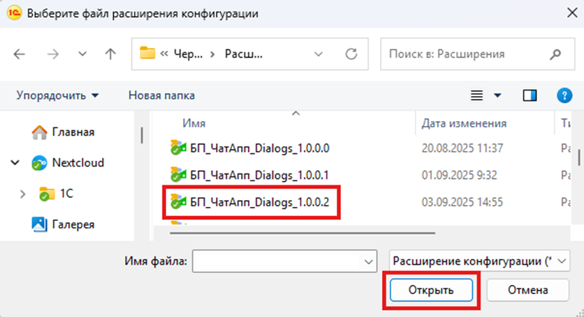В диалоговом окне выбора файла необходимо выбрать файл расширения и нажать кнопку