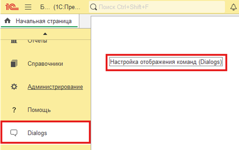 - Редактирование параметров (Dialogs). Полный доступ к подсистеме как на чтение, так и редактирование настройки видимости команд