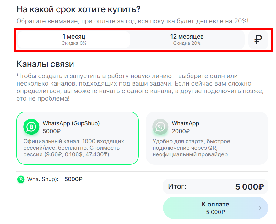 - Выберите период доступа и валюту для оплаты. При покупке на 12 месяцев действует скидка 20%.