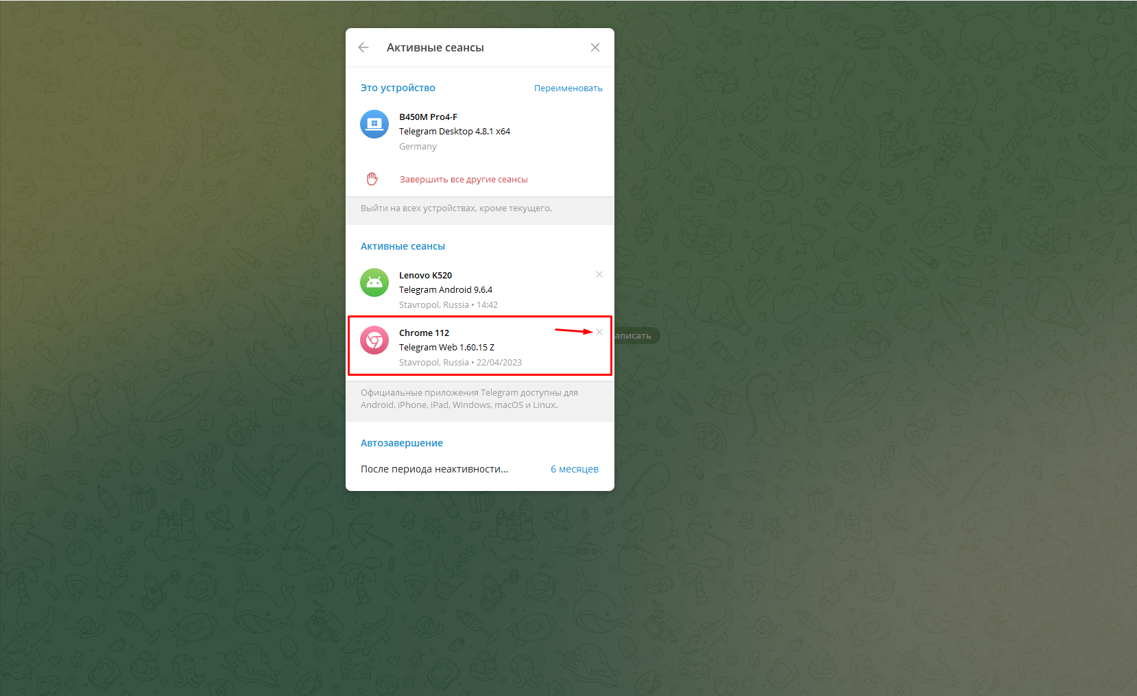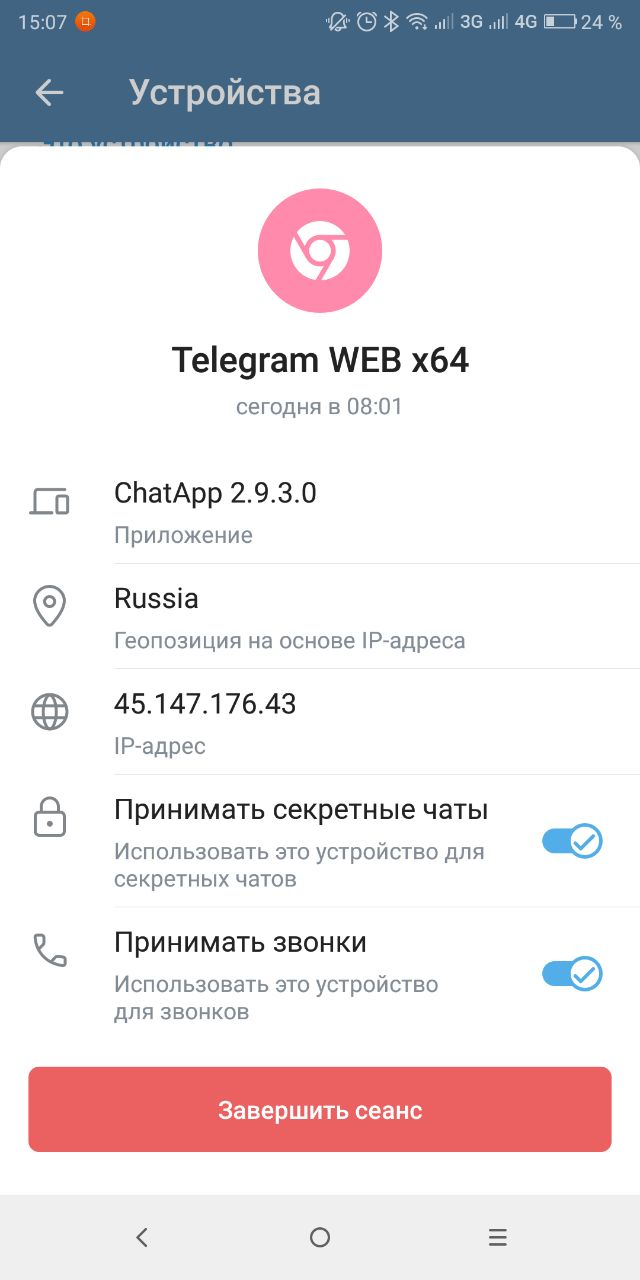 - Перейдите в раздел Устройства и удалите сеанс ChatApp.