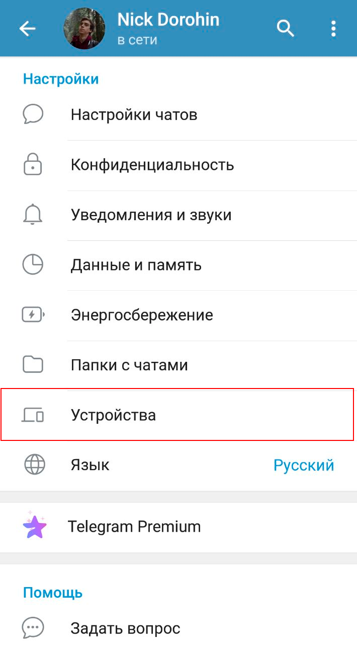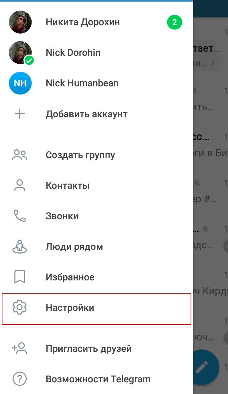 - В мобильном приложении Telegram нажмите на кнопку Настройки.
