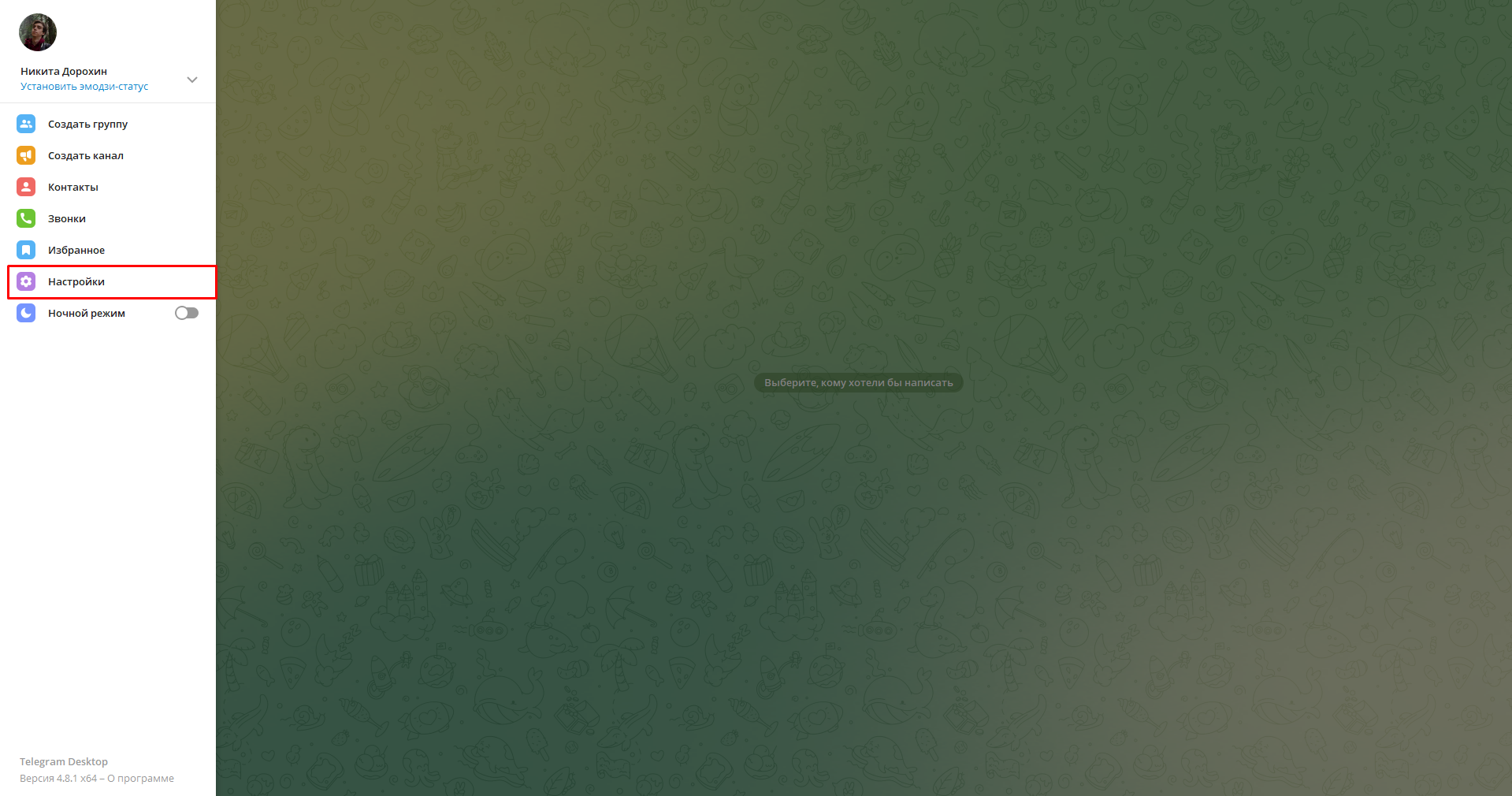 1. В десктоп-клиенте Telegram нажмите на кнопку «Настройки».