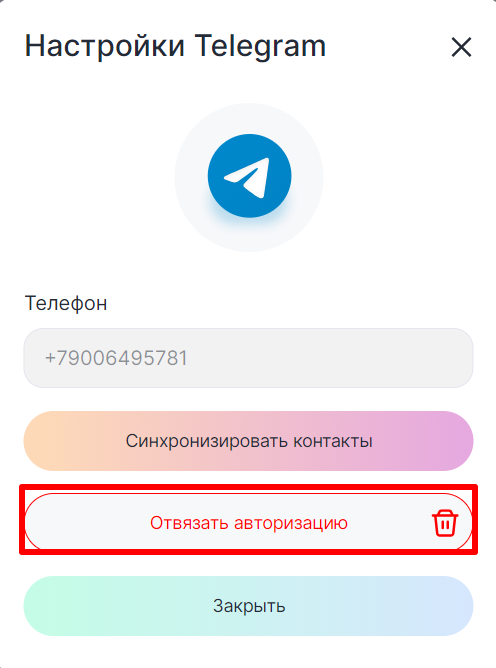 3. Нажмите «Отвязать авторизацию».