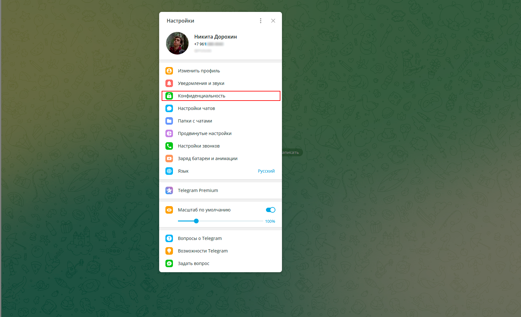 2. В открывшемся окне перейдите в раздел «Конфиденциальность».