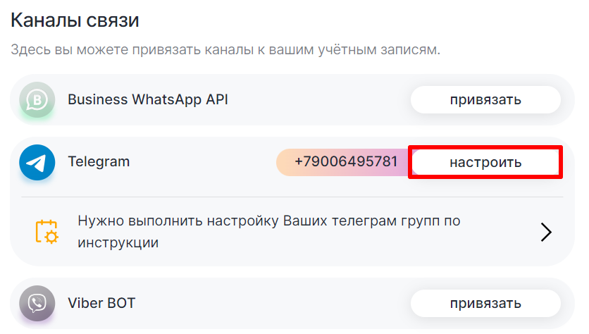 Есть три способа для смены аккаунта Telegram, привязанного к Личному кабинету.