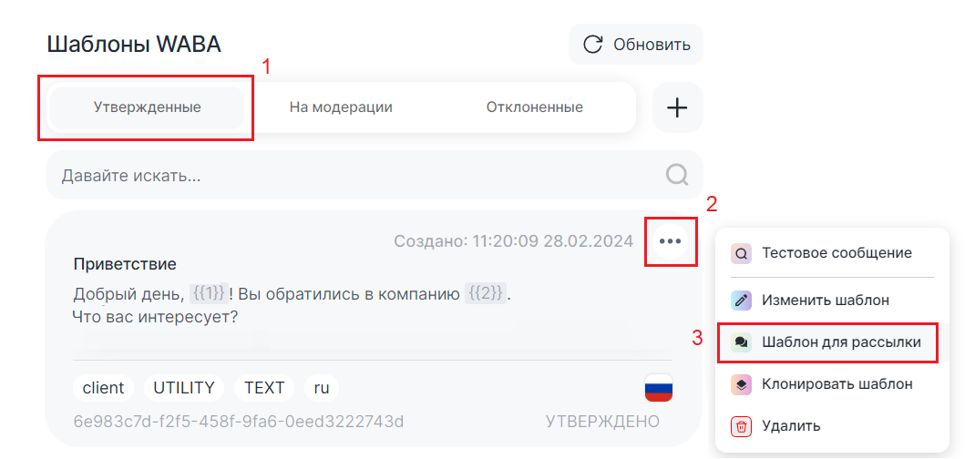 Шаблоны WhatsApp Business API (WABA) для рассылки