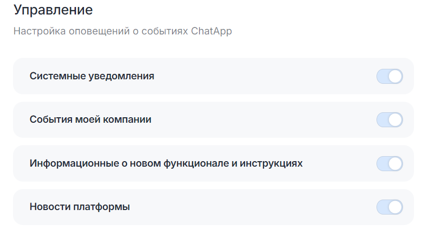 - Личный кабинет ChatApp (колокольчик) — в раздел «Уведомления»
