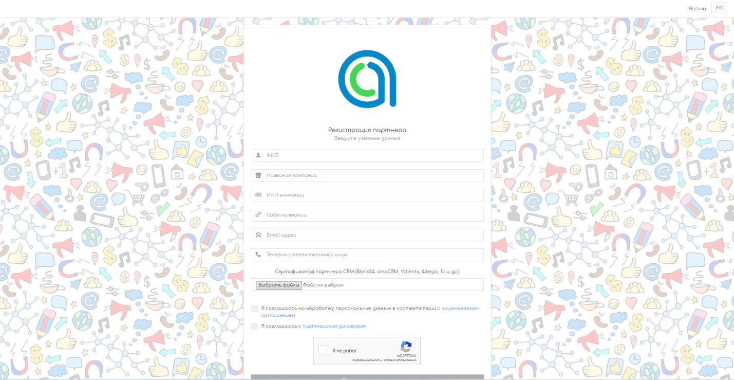 1) Перейдите на страницу подачи заявки и нажмите на кнопку «Стать партнером».
