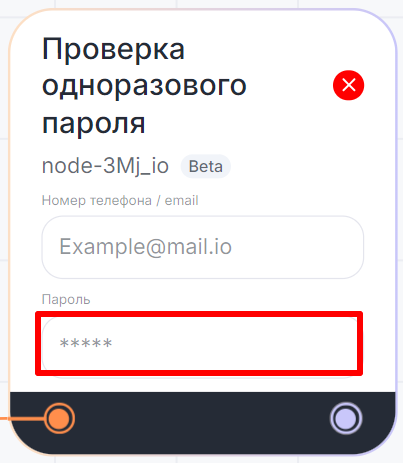 Блок «Проверка одноразового пароля» проверяет пароль и его соответствие контактному идентификатору пользователя — например, номеру телефона или почте. Может понадобиться для авторизации на сайте, подтверждения заказа в интернет-магазине или платежей.