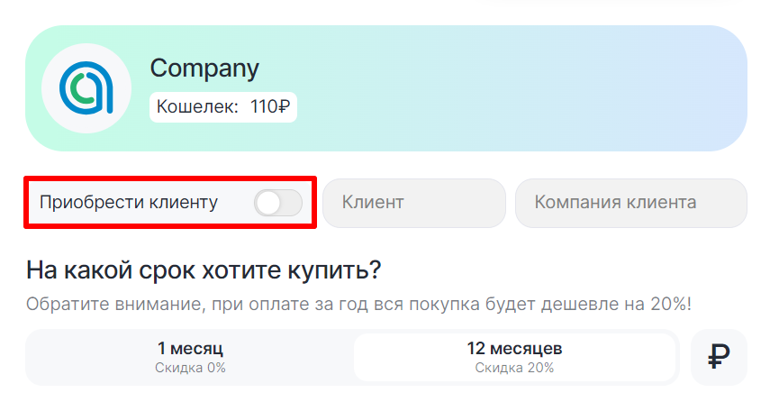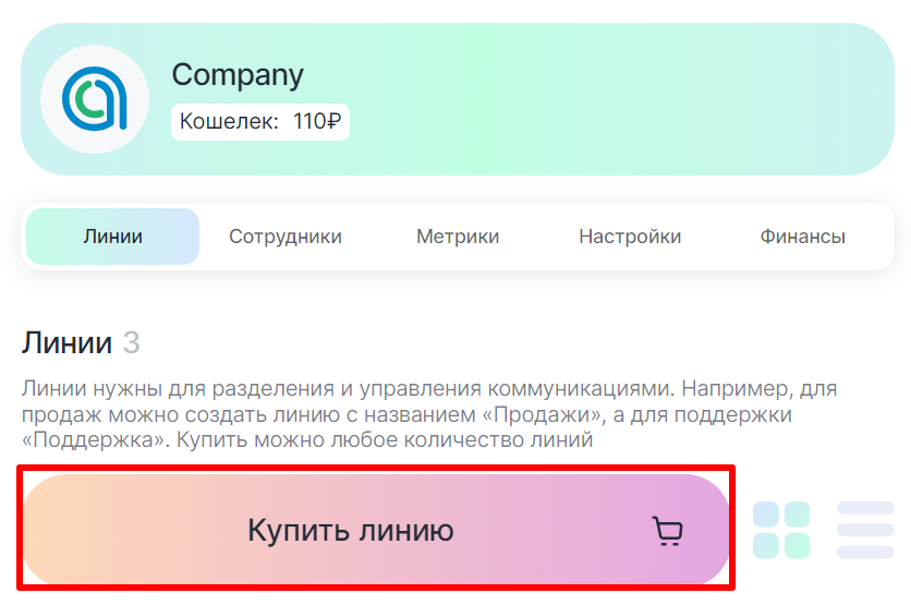 3. Нажмите «Купить линию». На странице оплаты нажмите «Приобрести клиенту»;