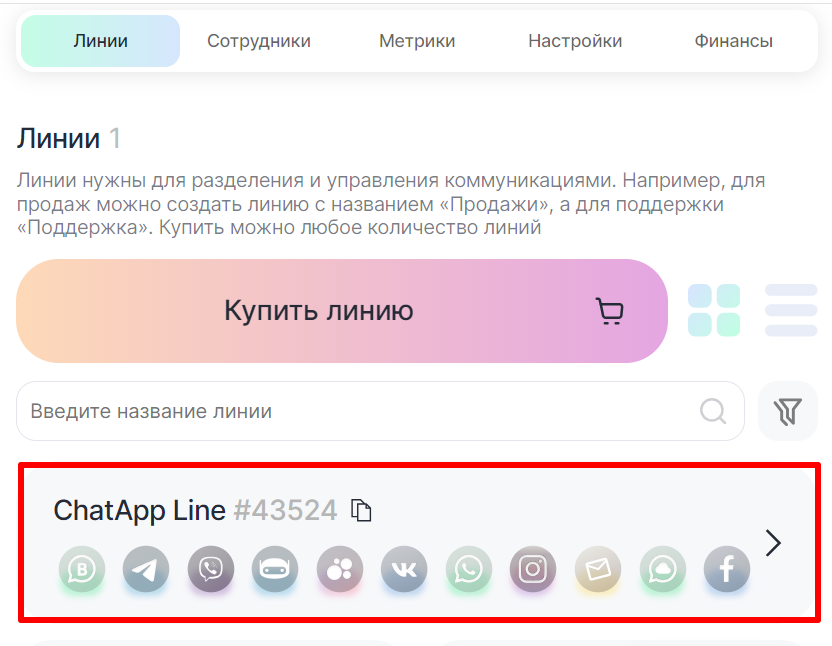 3. Выберите линию, к которой хотите подключить Telegram с Proxy;