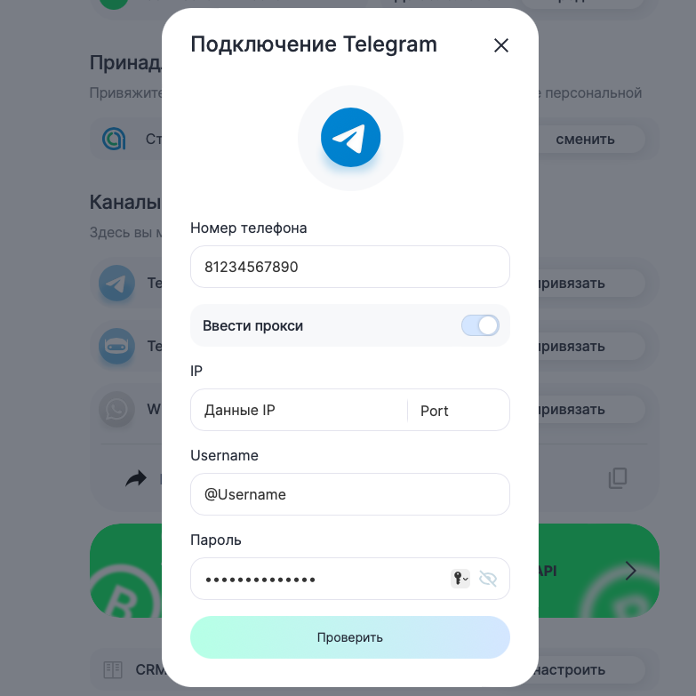 Вы можете подключить Telegram Personal используя личный Proxy-сервер.