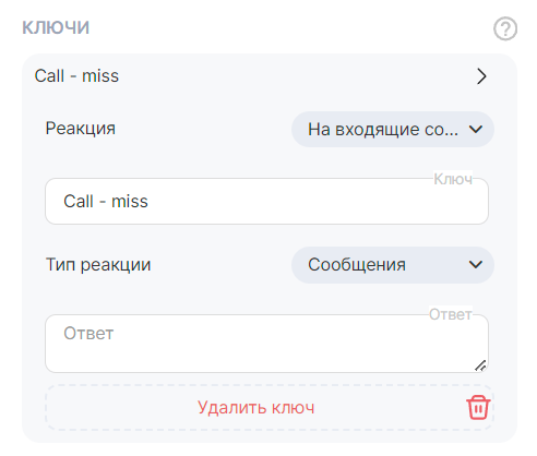 Чтобы настроить реакцию бота на пропущенные входящие звонки: