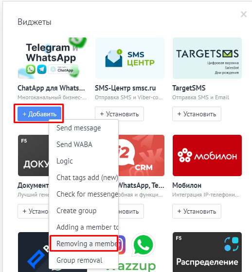 4. Выберите виджет ChatApp → Adding a member from the group.