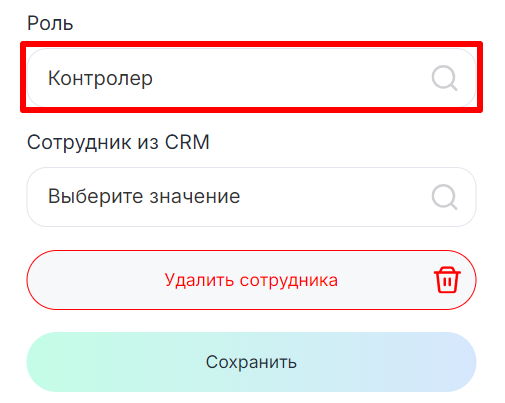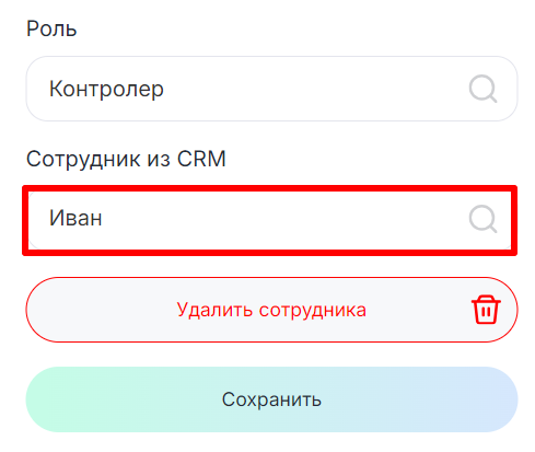 3. В поле «Сотрудник из CRM» можно сопоставить выбранного сотрудника с сотрудником из CRM.