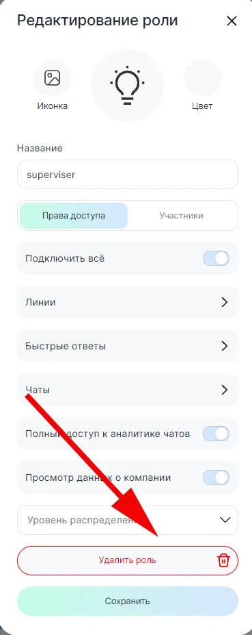 Если понадобится удалить роль, нажмите на кнопку «Удалить роль».