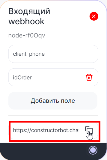6. Система сгенерирует уникальную ссылку webhook для второго сценария.