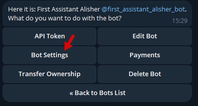 - Перейдите в «Bot Settings».