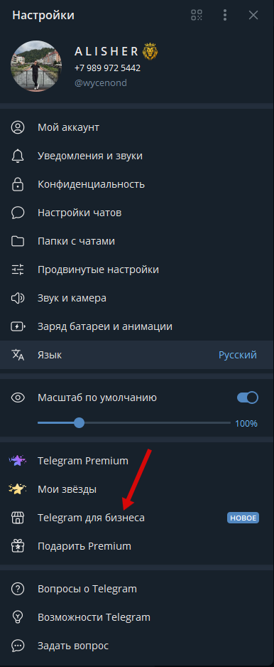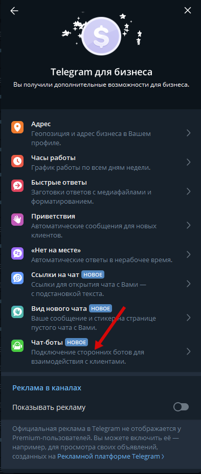 Подключение бизнес-аккаунта в Telegram