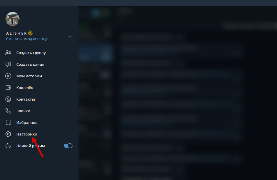 - Перейдите в настройки профиля Telegram.