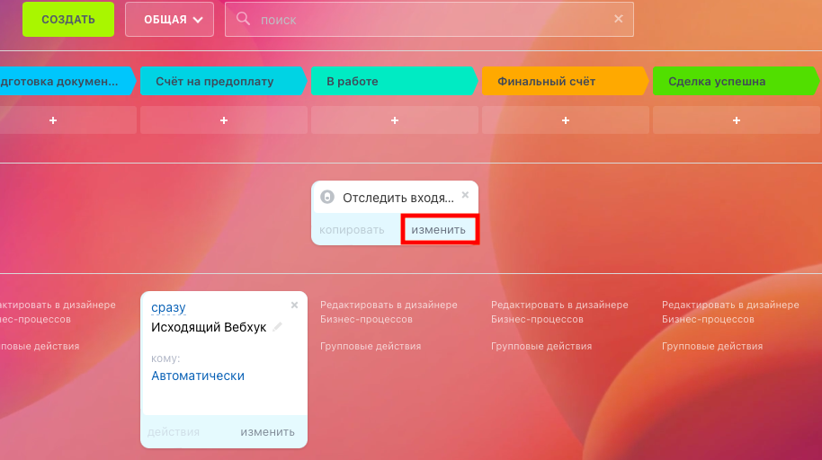 Готово! Теперь после прочтения сообщения клиента сделка автоматически перейдет на следующий этап, и сотрудники смогут дальше работать с активной сделкой.