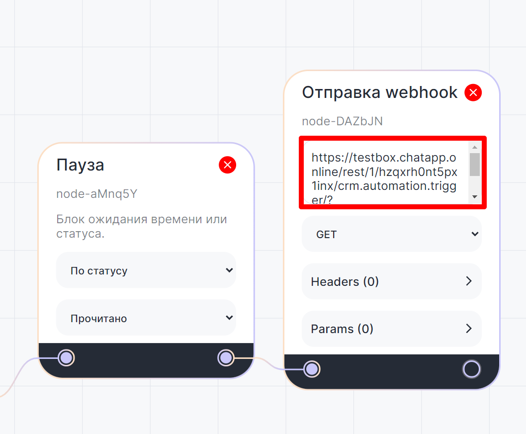 1. Вставьте ссылку в блок «Отправка Webhook».