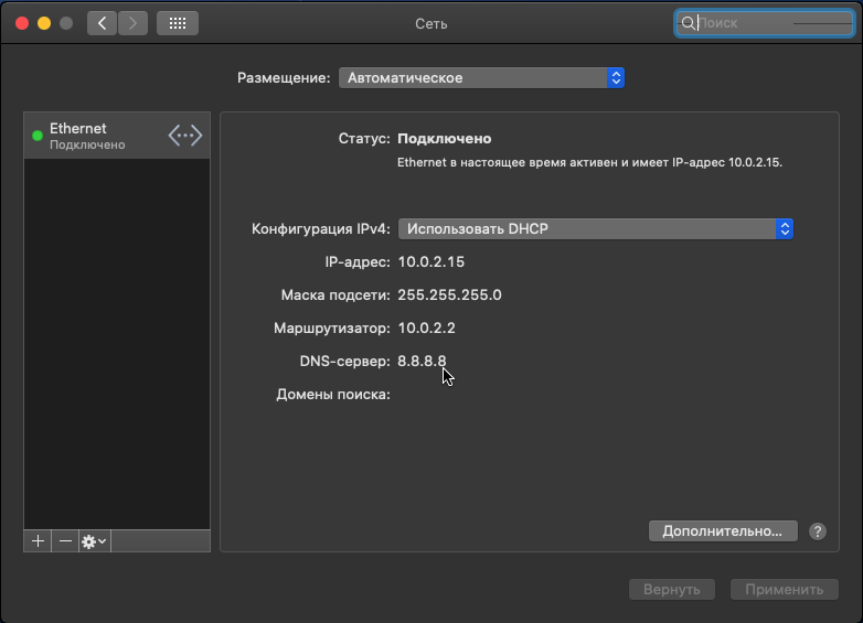 3) Выберите свою активную сеть (Wi-Fi или Ethernet) и нажмите "Дополнительно".