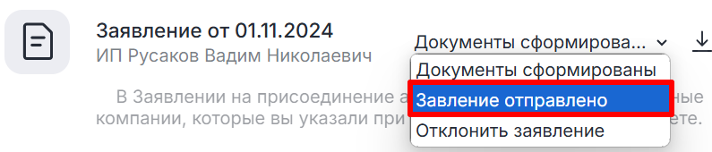 - Нажмите «Заявление о присоединении» в разделе «Документы».
