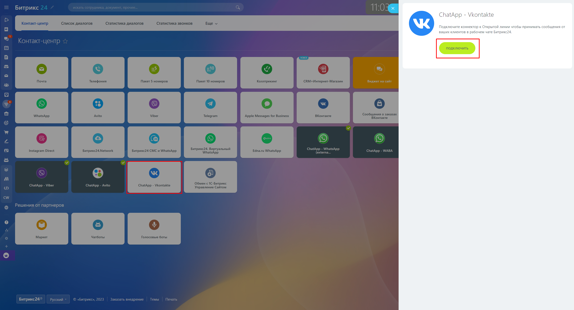 Подключите коннектор «ChatApp — Vkontakte», чтобы оставаться на связи с клиентами в открытых линиях Битрикс24.