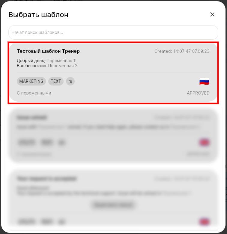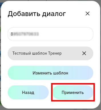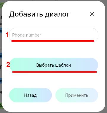 5. Введите номер телефона пользователя и нажмите на кнопку «Выбрать шаблон».